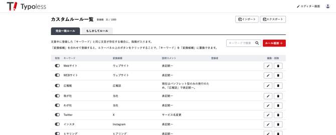 「もしかしてルール」を登録したい場合は、該当のルール(行)の「もしかしてルール」の列(最終列)をTRUEにセットした上で、インポートを行なってください。