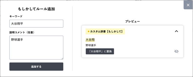 カスタム辞書において新たに「もしかしてルール」が登録できるようになりました。