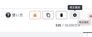 画面左側右上にある「校正設定」ボタンをクリックすると、校正設定モーダルが表示されます。