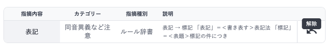 ルール辞書(青色の指摘)には、朝日新聞社内で利用されている辞書を基にした数万のルールが格納されていますが、ルールによってはお客さまにとって指摘の必要がないものも含まれています。